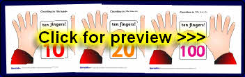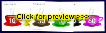 Numbers in multiples of 10 presented on tea cups. Great for emphasising the ‘tea’ sound of 10s numbers as opposed to ‘teen’ numbers.