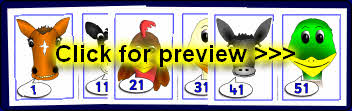 A5 flash cards featuring farm animals saying numbers in 10s from 1 to 101.