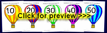 A set of colourful hot air balloon images with the numbers in 10s to 100. Perfect for printing and hanging in a classroom number line. Images can be easily re-sized.