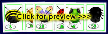 A5 flash cards featuring minibeast characters saying numbers in 10s from 8 to 108.