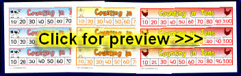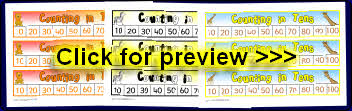 A5 flash cards featuring children saying numbers in 10s from 3 to 103.