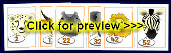 A5 flash cards featuring safari animals saying numbers in 10s from 2 to 102.