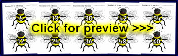 The numbers in 6s with bees and honeycomb hexagons up to 102.
