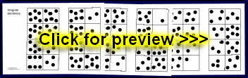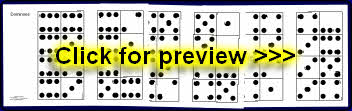 A set of 49 re-sizable JPG images of dominoes. Each can be enlarged up to A4 size or shrunk to suit your needs. The download also includes a PDF document with the dominoes pre-sized two-to-a-page.
