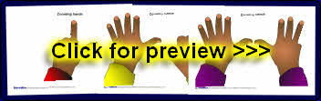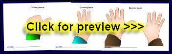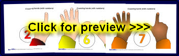 A4 printable sheets showing hands with numbers counting from 0 to 10.