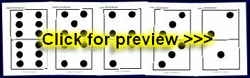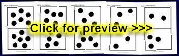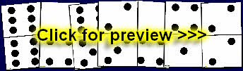 A set of 49 re-sizable JPG images of dominoes. Each can be enlarged up to A4 size or shrunk to suit your needs. The download also includes a PDF document with the dominoes pre-sized two-to-a-page.