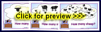 A set of 30 A4-sized posters showing a sleeping child counting sheep! Dream bubbles have sheep from 1-30. Great as visual aids for counting and estimation.