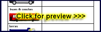 A printable worksheet for children to survey the types of vehicles passing by in traffic on the road.