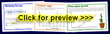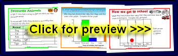 A set of visual aids and worksheets for data handling in Year 5. Includes activities using frequency charts, line graphs, pictograms and line bar graphs.