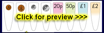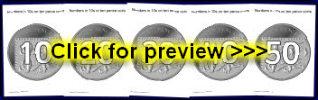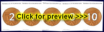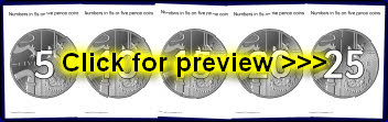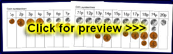 A set of A4-sized British coins that can be printed and laminated. Includes heads and tails images that can be fixed together back-to-back to make large-sized coins.