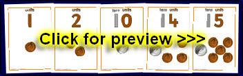 Printable posters using coins to illustrate tens and ones/units from 1 to 20. Includes both ‘ones’ and ‘units’ versions.