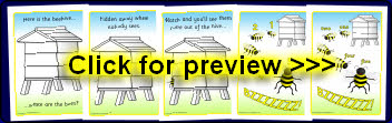 A set of A4 visual aids to accompany the number rhyme ‘Here is the beehive...’.