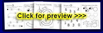A set of sheets which can be assembled into an A5 folded booklet to give to pupils. Includes activities to aid recognition and writing of the number 3. Ideal as a homework resource.