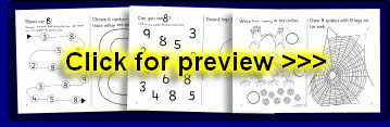 A set of sheets which can be assembled into an A5 folded booklet to give to pupils. Includes activities to aid recognition and writing of the number 8. Ideal as a homework resource.