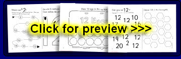 A set of sheets which can be assembled into an A5 folded booklet to give to pupils. Includes activities to aid recognition and writing of the number 12. Ideal as a homework resource.