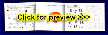 A set of sheets which can be assembled into an A5 folded booklet to give to pupils. Includes activities to aid recognition and writing of the number 18. Ideal as a homework resource.