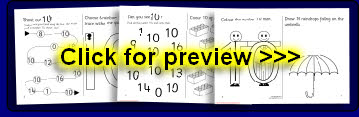 A set of sheets which can be assembled into an A5 folded booklet to give to pupils. Includes activities to aid recognition and writing of the number 10. Ideal as a homework resource.
