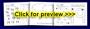 A set of sheets which can be assembled into an A5 folded booklet to give to pupils. Includes activities to aid recognition and writing of the number 19. Ideal as a homework resource.