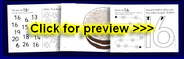 A set of sheets which can be assembled into an A5 folded booklet to give to pupils. Includes activities to aid recognition and writing of the number 16. Ideal as a homework resource.