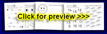 A set of sheets which can be assembled into an A5 folded booklet to give to pupils. Includes activities to aid recognition and writing of the number 15. Ideal as a homework resource.