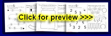 A set of sheets which can be assembled into an A5 folded booklet to give to pupils. Includes activities to aid recognition and writing of the number 5. Ideal as a homework resource.