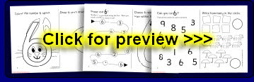 A set of sheets which can be assembled into an A5 folded booklet to give to pupils. Includes activities to aid recognition and writing of the number 6. Ideal as a homework resource.