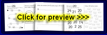 A set of sheets which can be assembled into an A5 folded booklet to give to pupils. Includes activities to aid recognition and writing of the number 20. Ideal as a homework resource.
