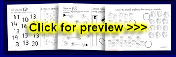 A set of sheets which can be assembled into an A5 folded booklet to give to pupils. Includes activities to aid recognition and writing of the number 13. Ideal as a homework resource.