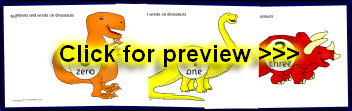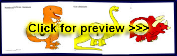 Simple, brightly coloured dinosaurs with number and number name. A5-ish size. Print multiple pages per sheet and use for ordering activities.