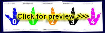 The numbers from 0 to 50 presented on different coloured dinosaur footprints, A4 size. These are great to be laminated to form a floor number line.