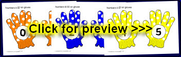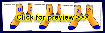A set of printable sock-pairs with numbers from 0 up to 20. These also match our Spots on Socks resource for counting and number-matching activities.