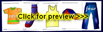 The number-words from zero to twenty on various items that you would find on a washing line. Great for use on a hanging classroom number line or in a role-play area.