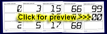 Simple printable cards with digital numbers from 0 to 100.