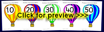 A set of colourful hot air balloon images with the numbers in 10s to 100. Perfect for printing and hanging in a classroom number line. Images can be easily re-sized.
