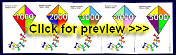 A set of printable kites (A4 size) with numbers in 1000s to 10000.