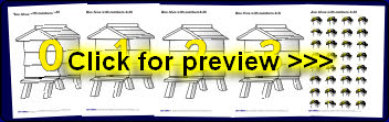 A set of printable beehives with the numbers from 0-20 plus printable bees which can be used for counting and placing on the beehives.