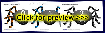 Multi-use printable cards with the numbers from 0 to 30 on spiders. Each card is 15cm by 15cm and can be used for all sorts of card-based activities.