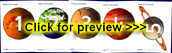 A set of colourful printable planets featuring the numbers from 0 up to 100. Ideal for classroom number lines, space-themed sequencing activities and more! They can be printed at a smaller size using Adobe Reader’s ‘page scaling’ function.