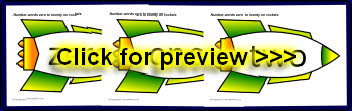 11 A4-sized printable sheets that can be laminated and used with playdough. Children read the number (11-20) on the rocket and make the corresponding number of playdough stars around it. Includes one blank rocket for children to write their own number using a dry-wipe pen.