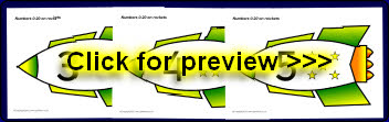 A PDF document with rocket-themed number tracks 0-10 and 11-20.