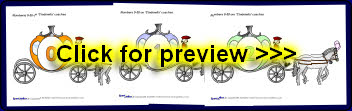 The numbers from 0-30 presented on coloured pumpkin ‘Cinderella’-style coaches.