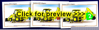 A set of printable posters featuring the numbers 0-20 with diggers. Use them as a colourful number line in your classroom or construction site role-play area. Or you could use them outdoors for sequencing activities (if laminated)... plus all sorts of other activities!