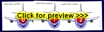 The numbers from 0 to 50 presented on fun aeroplane characters.