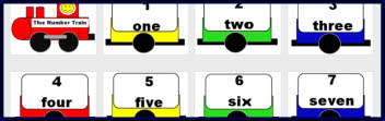 A printable number train with words and numbers from one to twenty. A colourful addition to your classroom.