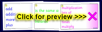 5 colour banners featuring the main mathematical operations and associated vocabulary.