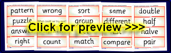 A set of printable cards featuring the additional ‘General’ mathematical vocabulary to be used in Reception.