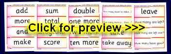 A set of printable cards featuring the mathematical vocabulary for ‘Adding and subtracting’ to be used in Reception.