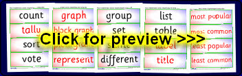 A set of printable cards featuring the mathematical vocabulary for ‘Organising and using data’ to be used in Year Two.