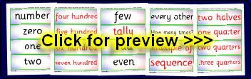 A set of printable cards featuring the mathematical vocabulary for ‘Numbers and the number system’ to be used in Year Two.