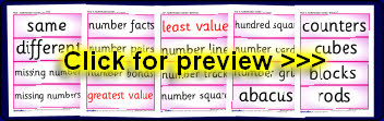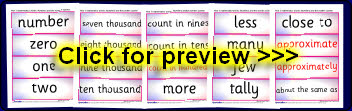 A set of printable cards featuring the additional general mathematical vocabulary to be used in Year 3.